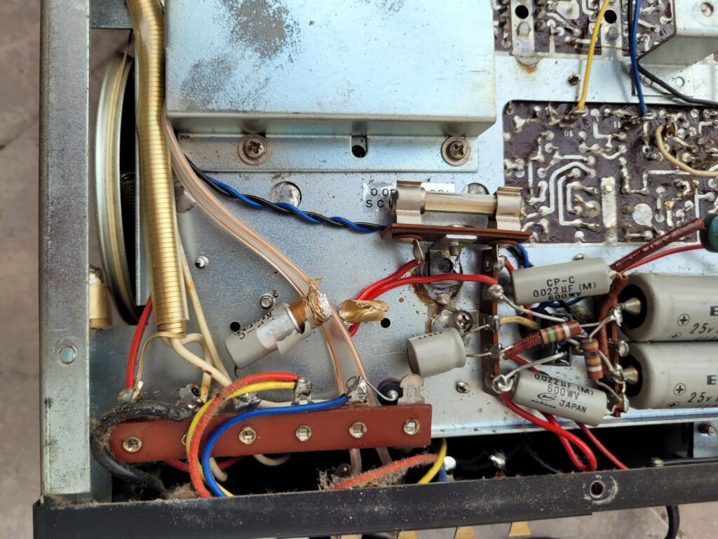 Una buena limpieza a conciencia es importante no solo para dejar todo visualmente aceptable sino también que es una excelente oportunidad para verificar tanto daños como ubicación de componentes críticos y su posible reemplazo. Y así fue, un pequeño capacitor de poliéster conectado como supresor de ruido en la línea de alimentación (C7) estaba destruido.