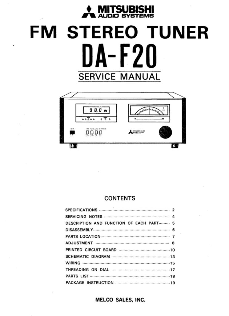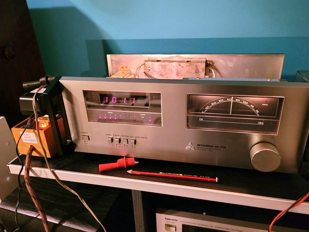 El Mitsubishi DA-F20 es un sintonizador de FM analógico controlado por PLL con decodificador estéreo MPX. Toda la electrónica está asociada a ello, sin excentricidades ni circuitos de escasa utilidad. No cuenta con recepción en AM ni onda corta, pero, entiendo yo, no lo necesita ya que está destinado a ser el primer eslabón de una cadena de audio HI-FI de alta calidad donde esas bandas no tienen cabida.