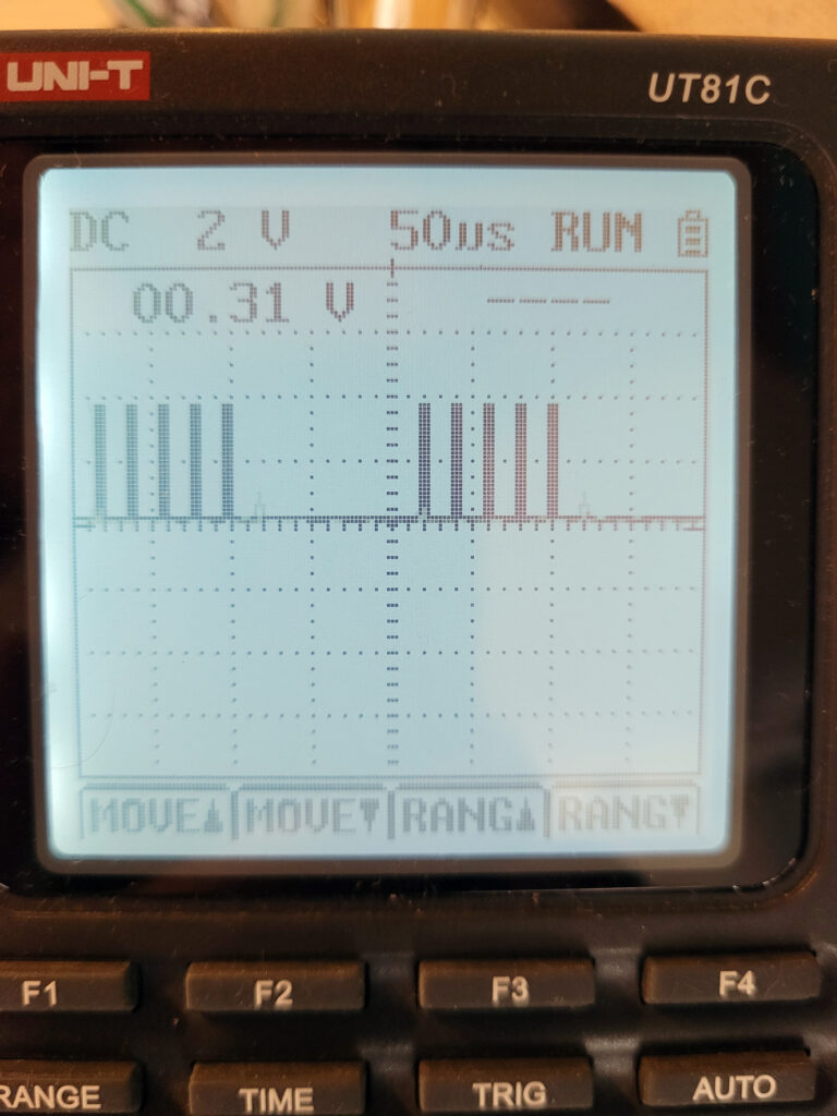He aquí el dilema, este equipo tiene dos circuitos separados como amplificadores de frecuencia intermedia, uno de banda ancha y otro de banda angosta, y el usuario puede elegir si utilizar uno u otro. Claramente el de banda ancha puede ofrecer algo más de calidad de audio, pero menos rechazo a una emisora adyacente, mientras que el de banda angosta mejora ese rechazo a costa de sacrificar algo de ancho de banda de audio. Y, en principio, parece que uno y el otro son independientes. Pero resulta que no es tan así. El amplificador de banda ancha solo se dedica a su función principal, amplificar FI en banda ancha. Mientras que el amplificador de banda angosta, además de hacer lo propio, genera señales para el indicador de nivel de señal (pin 13) y esta misteriosa señal de Mute (pin 12) que termina apagando el decodificador MPX aun cuando no lo hayamos seleccionado.  Adicionalmente, esta señal también es responsable de encender (o mejor dicho de apagar) el LED verde que indica PLL enganchado, algo que también funciona erráticamente aun cuando el PLL está enganchado. Esto es fácilmente detectable midiendo tensión sobre el pin 12 del HA1137, que debería ser 0V cuando hay una emisora sintonizada. En este caso aparece una tensión que varía fuertemente con la modulación.