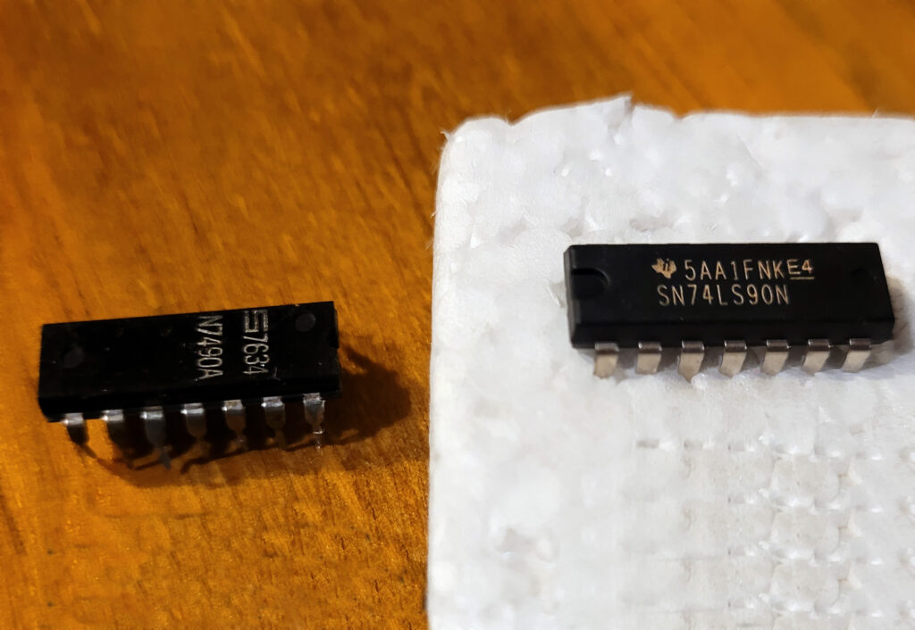 Está claro que IC104 (SN7490), un contador TTL de los de toda la vida, no está funcionando y no hay más remedio que reemplazarlo. Por suerte, es común, fácil de conseguir y muy barato.