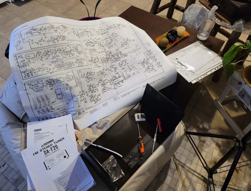No más conectarlo comienzo verificando lo más evidente, lo que ya Daniel me había anticipado, el equipo no engancha correctamente la decodificación estéreo. Pero analizando más en detalle también me doy cuenta de algún problema con la sintonía, hay una ligera deriva e inestabilidad en la frecuencia, cosa que no debería existir ya que si por algo se caracteriza en DA-F20 es por su extrema precisión. Este segundo problema, en principio, me pareció que iba a ser más difícil de resolver que el del estéreo. Pero una vez más, las expectativas me jugarán en contra.