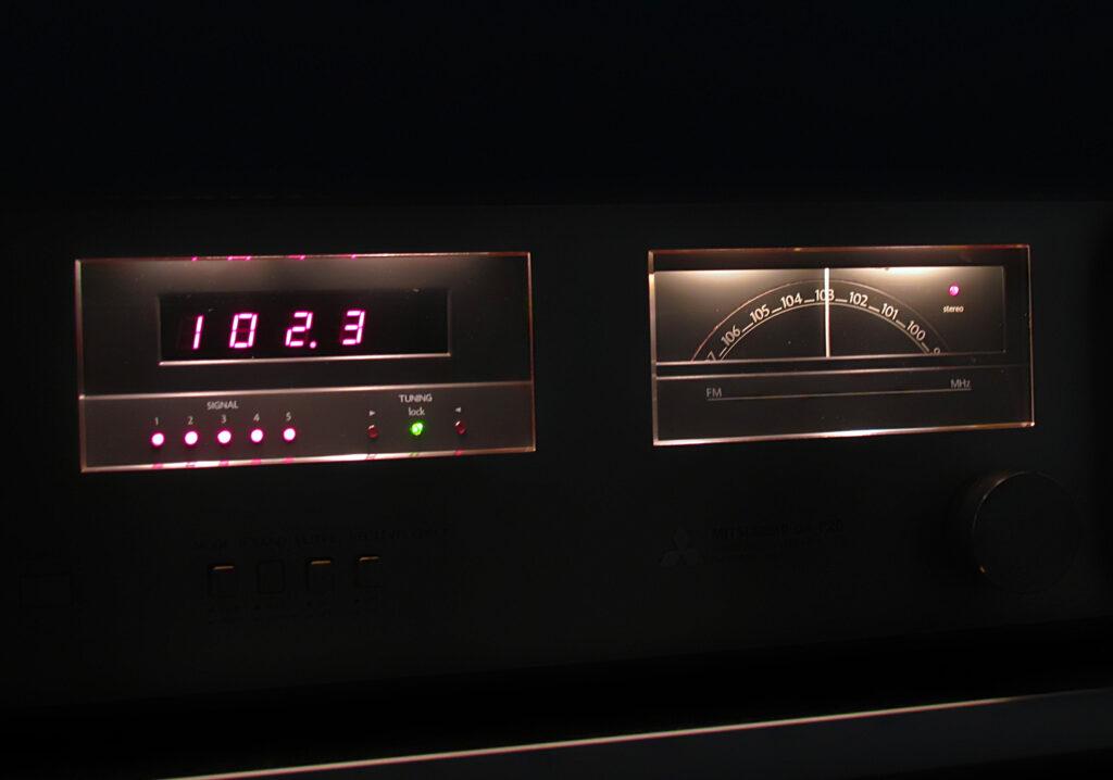 El resultado de todo este cuidado en el manejo de las señales es un sonido limpio, prístino, donde todas las frecuencias están presentes sin que ninguna destaque por sobre otra. Bajos, medios y altos están en su justa medida, solo limitado por la calidad de la transmisión que se sintonice. Justamente, si tengo que definir el sonido tengo que decir que destacan los bajos contenidos, los altos limpios y suaves, que no agreden y una ausencia total de ruidos y distorsiones. Para ser estrictos, una transmisión de FM (en su concepción) no podríamos catalogarla como alta fidelidad, hay muchas restricciones que sostienen ello, como por ejemplo el ancho de banda de audio limitado a 15Khz. Sin embargo, al escuchar este equipo, se nota claramente el empeño del fabricante en superar esas limitaciones intrínsecas o al menos, que no sea el Mitsubishi quien las imponga.